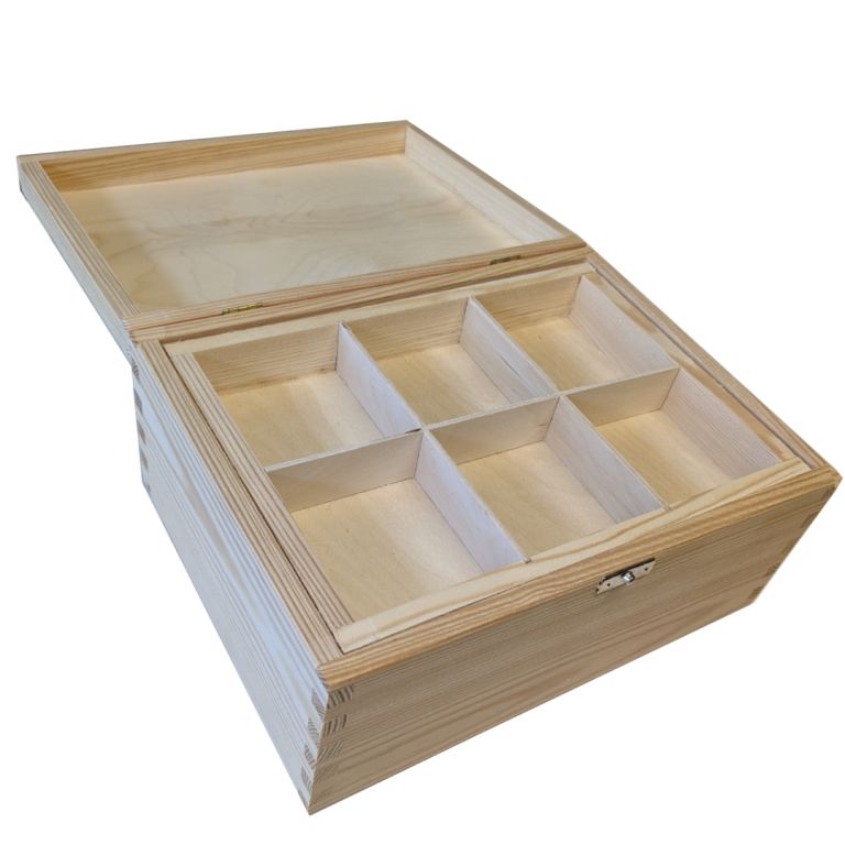 Uniwersalne drewniane pudełko z sosny – idealne na herbaty, biżuterię i drobiazgi.