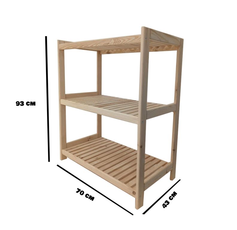 Drewniany regał z 3 półkami, 93 x 70 x 43 cm