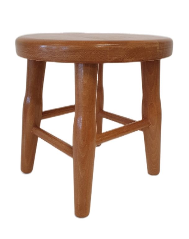 Praktyczny stołek z bukowego drewna, lakierowany, stabilny i trwały do codziennego użytku.