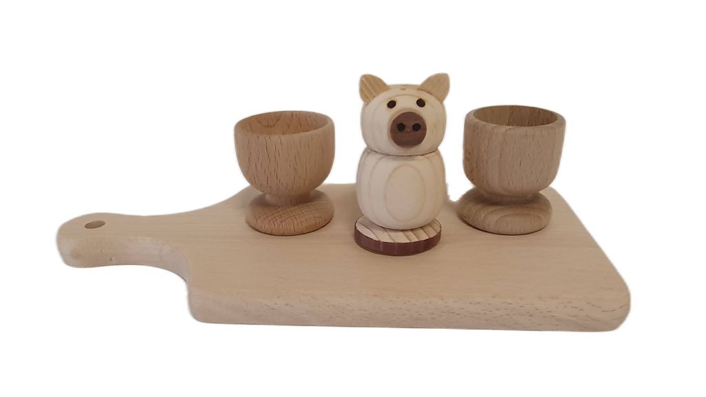 Rozpocznij dzień z uśmiechem dzięki temu uroczemu zestawowi śniadaniowemu z naturalnego drewna bukowego. Stojaki na jajka i solniczka w kształcie świnki sprawią, że każdy poranek stanie się wyjątkowy i pełen radości. To doskonały wybór dla rodzin i miłośników przytulnych śniadań.