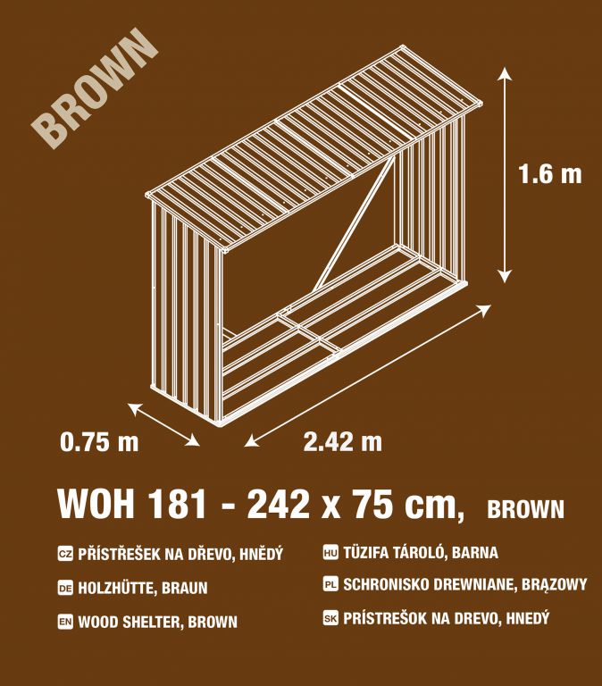 Wiata na drewno G21 WOH 181-242 x 75 cm, brąz