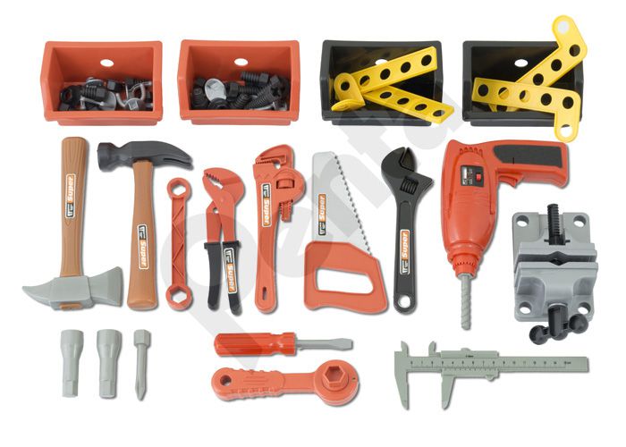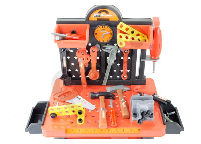Zestaw dla małych majsterkowiczów. Zestaw pełen narzędzi, które układasz jako stół roboczy ...