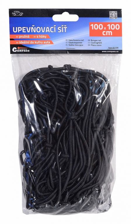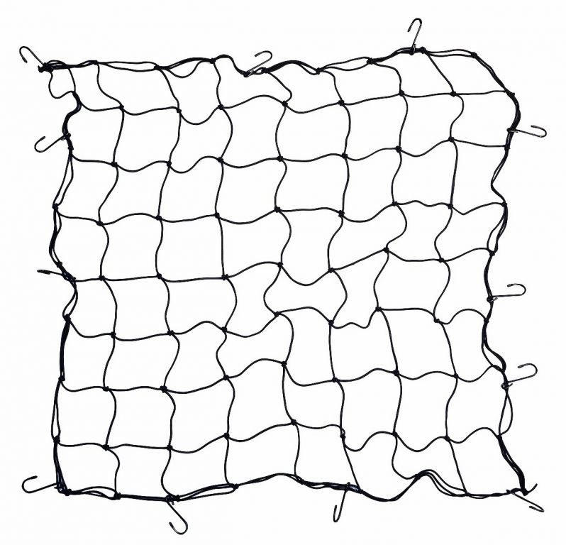 Elastyczna siatka mocująca o wymiarach 100 x 100 cm, która wyposażona jest w haczyki do łatwego mocowania. Nadaje się do każdego środka transportu.