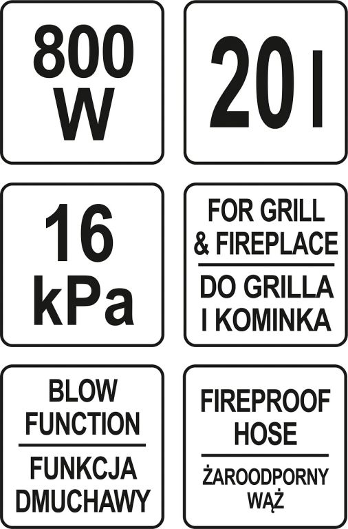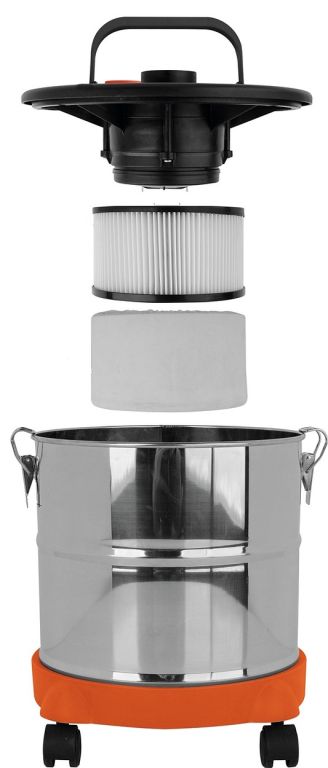 Wąż ssący jest odporny na wysoką temperaturę i jest zakończony aluminiową dyszą ssącą. Pojemnik na popiół wykonany jest ze stali nierdzewnej i ma pojemność 20 litrów.