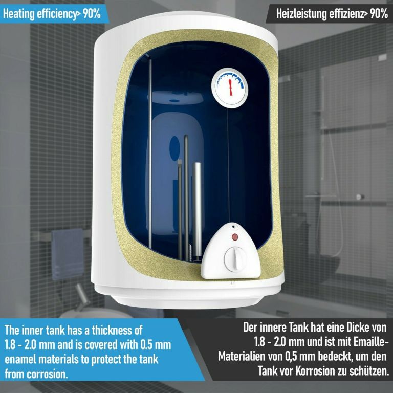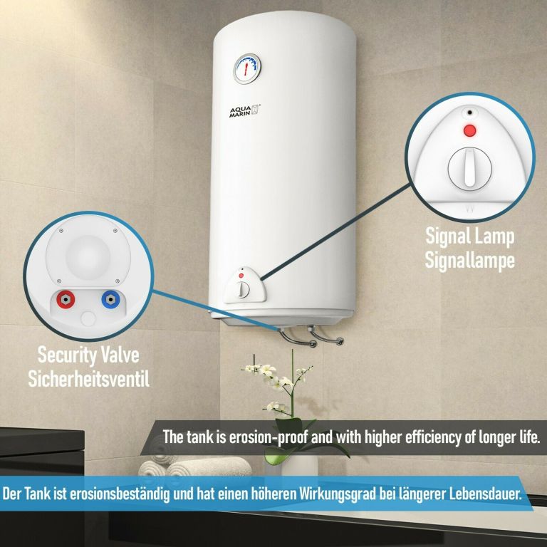 Nasz podgrzewacz wody posiada zbiornik ze stali emaliowanej z odkamienianiem i anodą magnezową, co zapewnia odporność na korozję i długą żywotność produktu. Wyposażona jest w regulowany termostat, który umożliwia podgrzanie wody do 75°C, a także zawór bezpieczeństwa i wszystkie niezbędne materiały mocujące. Ten model zapobiegający osadzaniu się kamienia jest dostępny z różnymi wyjściami, więc na pewno wybierzesz ten, który będzie odpowiadał Twoim potrzebom ciepłej wody. Czas nagrzewania do 65°C to około 110 minut.
