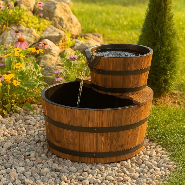 Fontanna ogrodowa - fontanna z dwoma drewnianymi wiaderkami