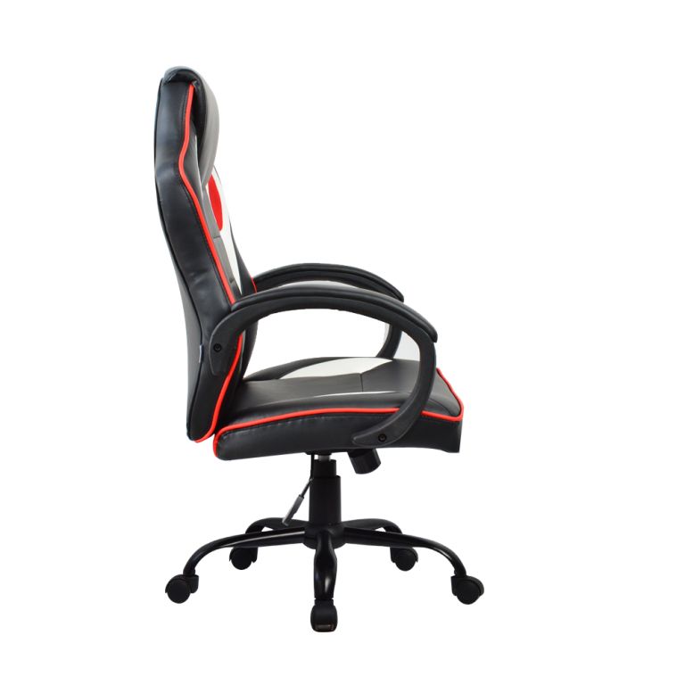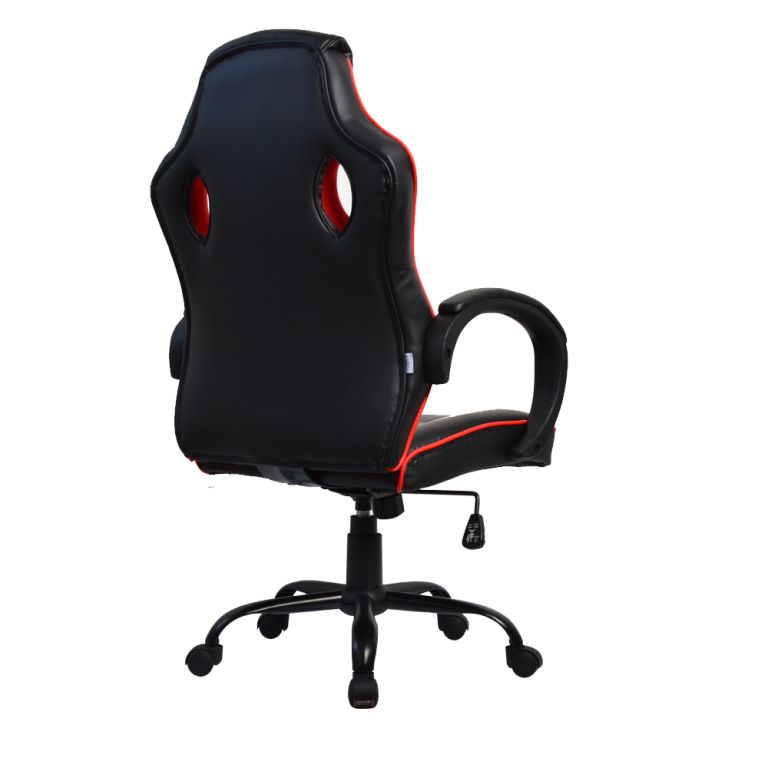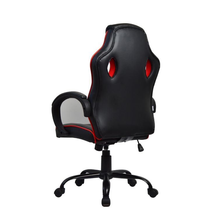 Ten fotel biurowy dla graczy oferuje połączenie wygody i stylu z czarną tapicerką z PU i materiału Mesh, uzupełnioną odważnymi czerwonymi akcentami. Ergonomiczna konstrukcja jest wspierana przez amortyzowane podłokietniki i regulację wysokości tłoka gazowego klasy 2, umożliwiając dostosowanie fotela do indywidualnych potrzeb. Mechanizm odchylania i blokady pozwala ustawić optymalną pozycję do pracy i odpoczynku.