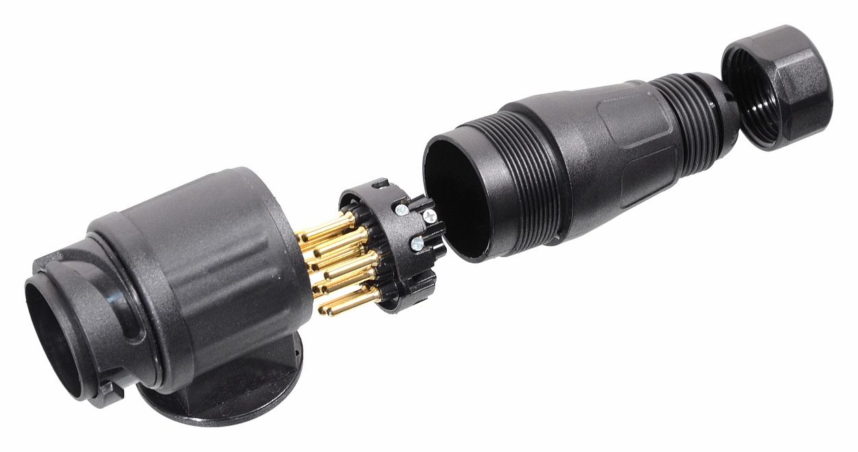 Ukazać szczegółowy opisGniazdo do pojazdów przyczepowych, zgodne z normą DIN 11446, 13 pinów.