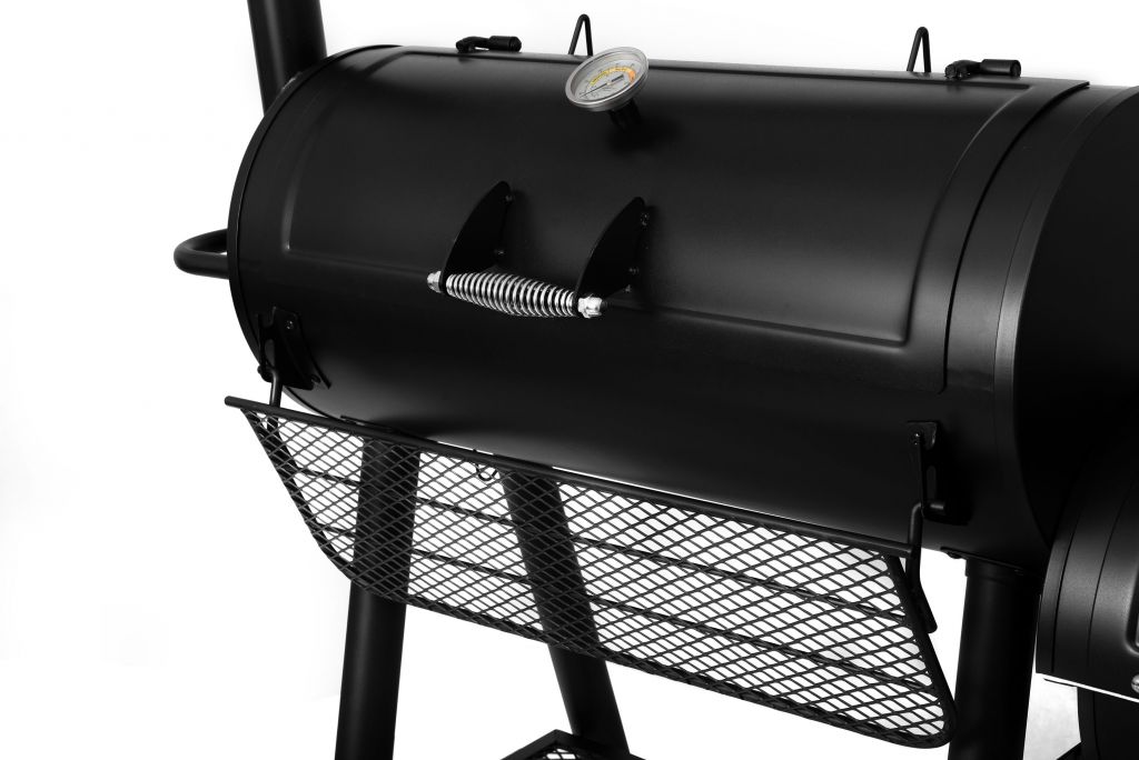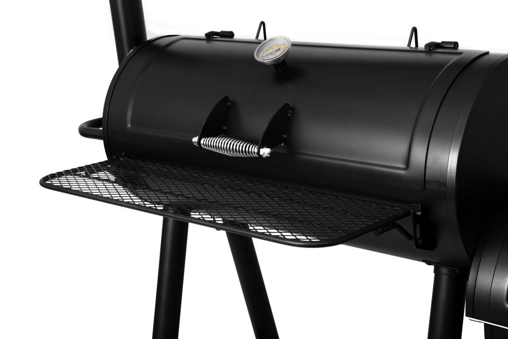 Kup grill ogrodowy Colorado BBQ i zdobądź niezastąpionego towarzysza na letnie grillowanie. Grill wykonany jest z grubej blachy o grubości do 2,5 mm z powłoką ognioodporną. Duży grill ogrodowy na węgiel drzewny ma dwa kominki i dwa miejsca do grillowania z żeliwnymi rusztami o wymiarach 89 x 39 cm i 38,5 x 36 cm. Można w nim grillować i wędzić, sprytna konstrukcja grilla pozwala na jednoczesne przygotowywanie potraw o różnej intensywności ciepła. Ogromną zaletą grilla jest możliwość korzystania tylko z jednego obszaru grillowania, w zależności od rodzaju obróbki cieplnej lub wielkości i ilości grillowanych specjałów. Posiada z przodu pojemną półkę do przechowywania, którą można wykorzystać np. do przechowywania narzędzi do grillowania. Nie zapomnieliśmy o reżimie picia i wyposażyliśmy grilla w otwieracz do butelek umieszczony z boku grilla. Grill posiada inteligentny i pomysłowo zaprojektowany system regulacji powietrza oraz praktyczny wbudowany termometr do określania optymalnej temperatury grilla, który jest wbudowany w pokrywę grilla. Czyszczenie grilla i usuwanie popiołu jest łatwe dzięki wysuwanej popielniczce. Po grillowaniu zalecamy przykrycie grilla osłoną grilla, aby chronić przed niepogodą i przedłużyć żywotność grilla.