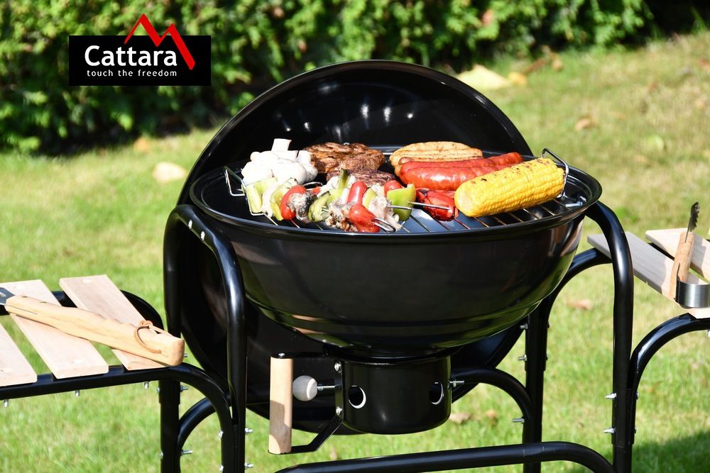 Ukazać szczegółowy opisGrill na węgiel drzewny MESSINA do ogrodów i tarasów. Uchwyt na pokrywie jest drewniany i ma wystarczająco dużo miejsca na chwyt.
