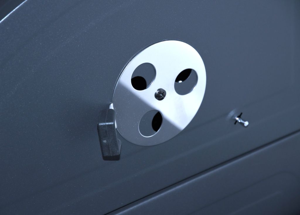 Bardzo stabilna konstrukcja wykonana z precyzyjnie obrobionej stali o trwałym, szorstkim czarnym kolorze. Konstrukcję uzupełniają 2 kółka ułatwiające mobilność grilla. Rama na dole służy do dalszego zwiększenia stabilności, a także jako miejsce do przechowywania. Po bokach znajdują się składane półki do przechowywania różnego sprzętu do grillowania lub przechowywania samych naczyń. Metalowe elementy sterujące i uchwyty są wystarczająco duże, aby zapewnić wygodny chwyt i łatwość w obsłudze. Dwustronna stalowa regulacja wentylacji idealnie komponuje się z konstrukcją. Pokrywa na zawiasach jest wyposażona w termometr w górnej części do stałej kontroli temperatury wewnątrz grilla. Do przygotowania potraw na ciepło grill jest wyposażony w solidny, trzyczęściowy ruszt stalowy. Ponadto strefa grillowa wyposażona jest w regał do przechowywania dań gotowych do utrzymywania temperatury lub ich podgrzania. Kolejną zaletą grilla są ruszty na węgiel o regulowanej wysokości, dzięki czemu przestrzeń do grillowania można regulować za pomocą mechanizmów z przodu, zgodnie z wymaganiami potraw. Drzwiczki z przodu grilla znacznie ułatwiają uzupełnianie węgla. Szuflady na popiół w najniższej części obszaru grilla są wtedy zapewnione dla łatwiejszego czyszczenia.
