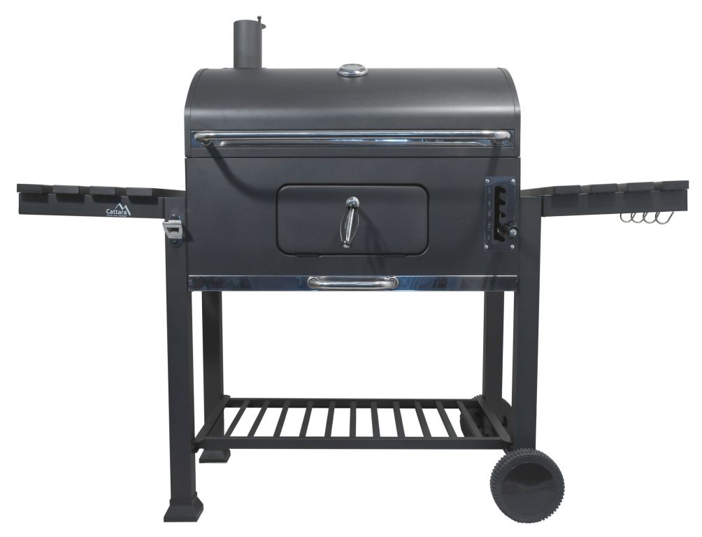 Metalowe elementy sterujące i uchwyty są wystarczająco duże, aby zapewnić wygodny chwyt i łatwe w obsłudze. Dwustronna stalowa regulacja wentylacji idealnie komponuje się z konstrukcją. Pokrywę na zawiasach uzupełnia komin na górze i jest również wyposażona w termometr do stałej kontroli temperatury wewnątrz grilla.