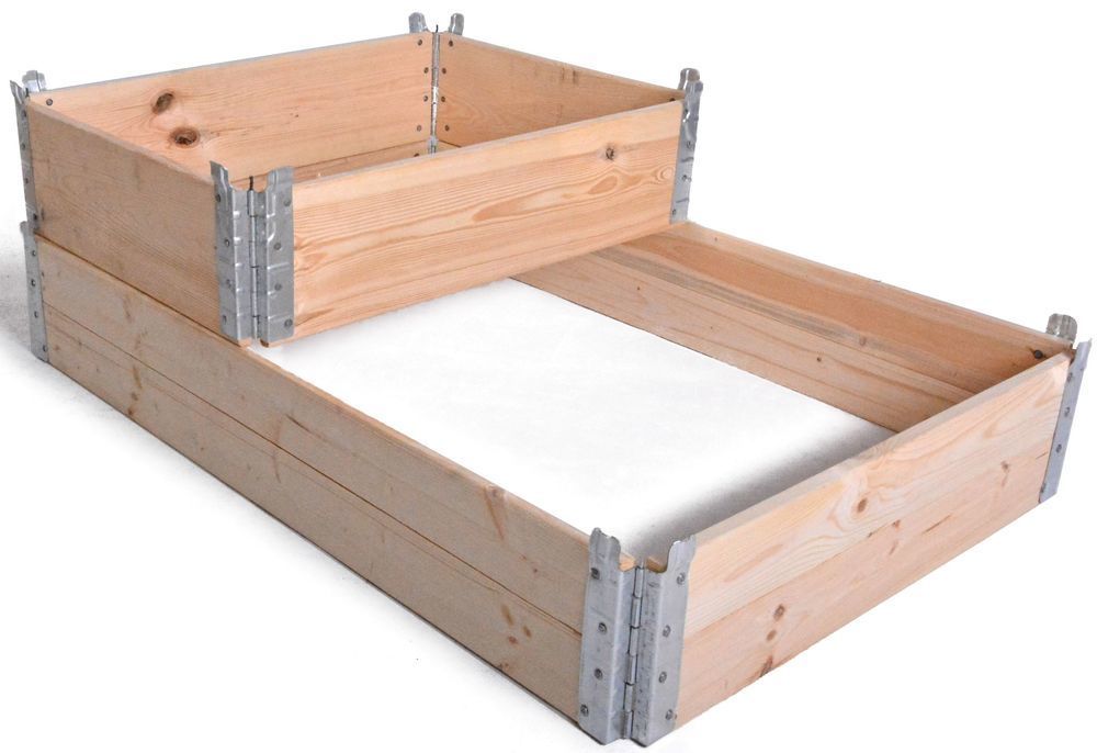 Podwyższona składana grządka drewniana wykonane z naturalnego drewna sosnowego. Naturalne wykonanie pozwala na pomalowanie i zaimpregnowanie łóżka w zależności od potrzeb.