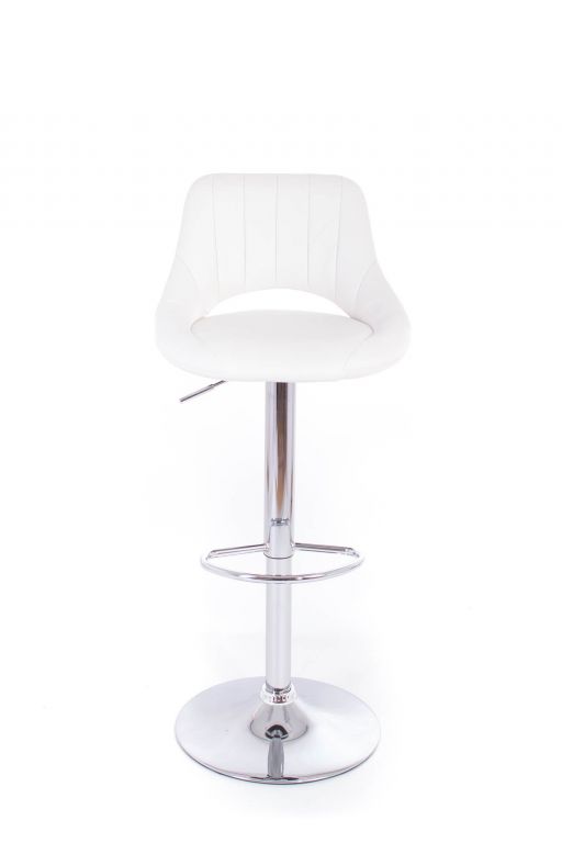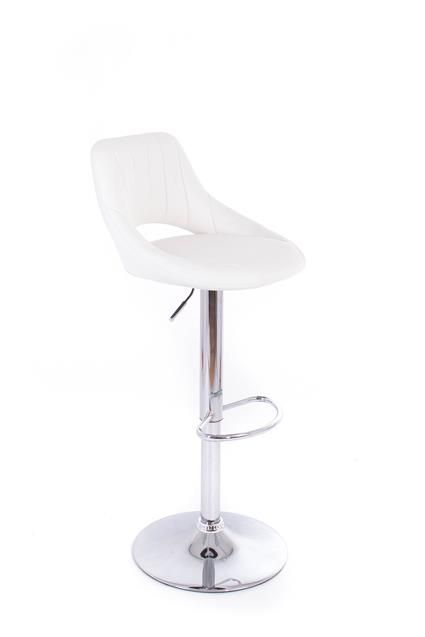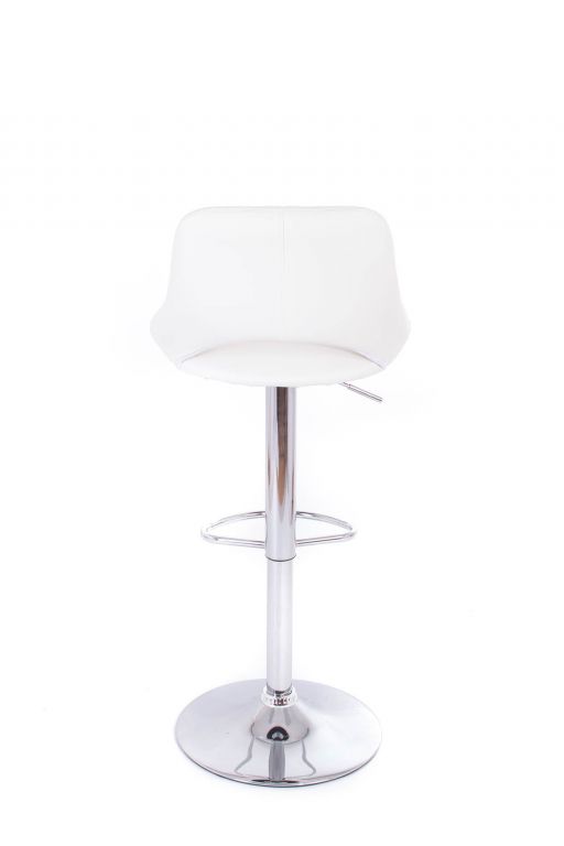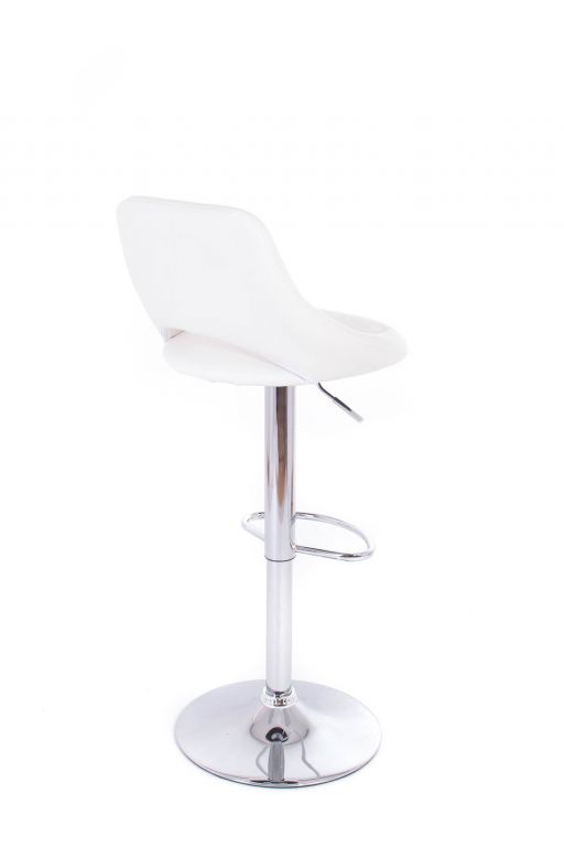 Zakładasz restaurację lub kawiarnię? A może masz bar w domu? Codzienne rozmowy przy barze mogą być teraz jeszcze przyjemniejsze. Usiądź wygodnie w wygodnej tapicerce. Ciesz się maksymalnym komfortem przy porannej kawie lub wieczornym drinku z przyjaciółmi. Designerski stołek barowy ma regulowaną wysokość i jest obrotowy. Biała wyściółka ze sztucznej skóry. Noga krzesła wykonana ze stali chromowanej posiada wygodny podnóżek na okrągłej podstawie. Chrom ma efekt lustra, który wygląda bardzo czysto i elegancko. Nośność tego krzesła to 120 kg. Krzesło jest bardzo łatwe w montażu.