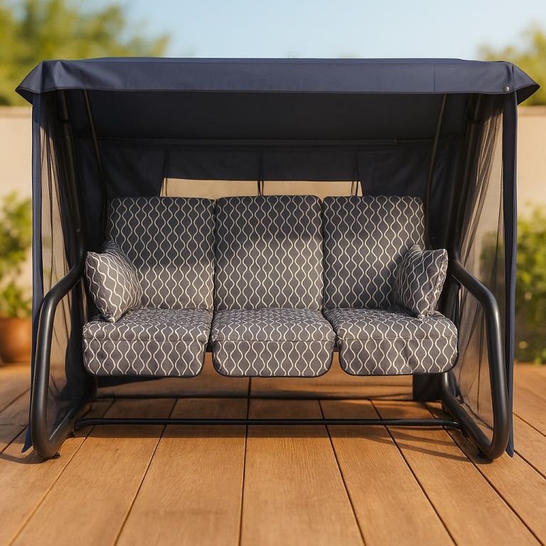 Huśtawka metalowa 4-osobowa z funkcją leżanki i moskitierą: komfort, trwałość i styl, które zamienią każdy ogród w strefę relaksu dla całej rodziny.