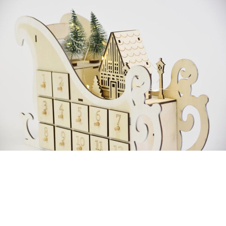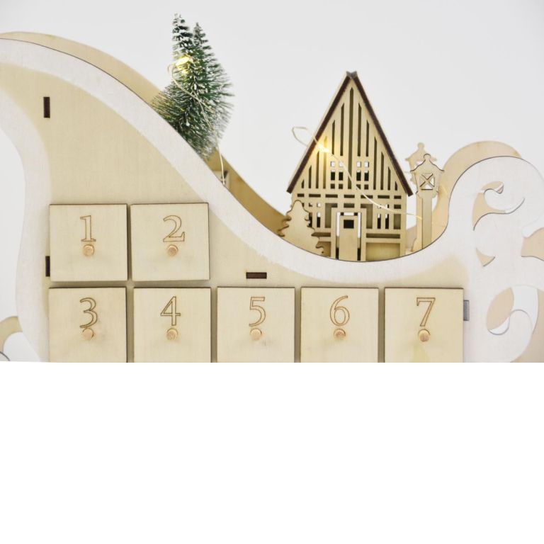 Kalendarz adwentowy świąteczny, sanie, 10 LED, na baterie