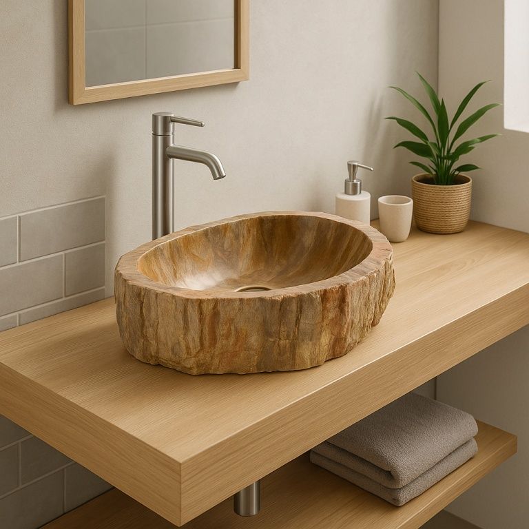 Chcesz nadać swojej łazience wyjątkowy akcent, którego nie będzie miał nikt inny? Dzięki tej umywalce ze skamieniałego drewna zyskujesz nie tylko praktyczny element wyposażenia, ale też naturalny artefakt z historią sięgającą milionów lat. Każda umywalka jest unikatowa — różni się kształtem, rysunkiem i odcieniem, co stanowi o jej wyjątkowości. Ciepły wygląd drewna w połączeniu z chłodnym kamieniem sprawia, że umywalka wygląda luksusowo, a jednocześnie naturalnie.