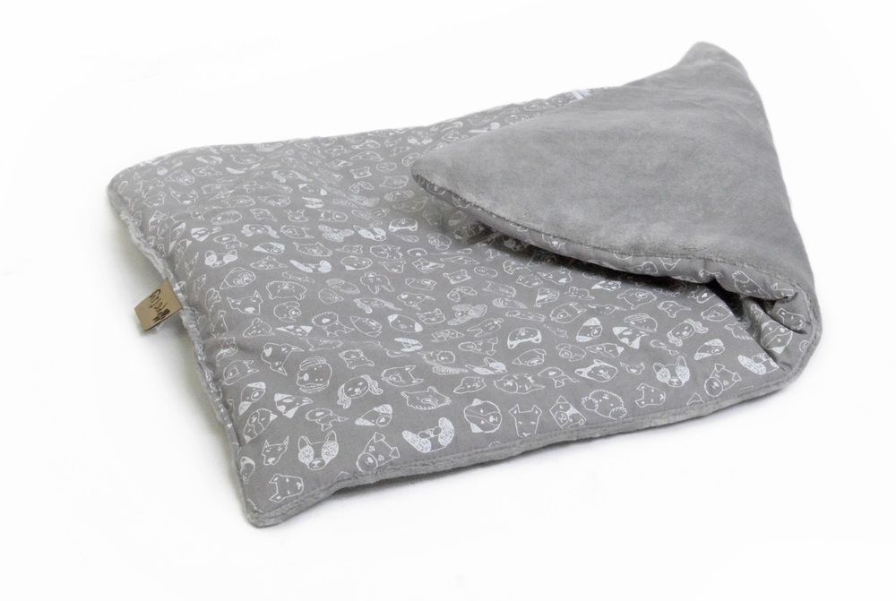 Dwustronny koc podróżny dla czworonożnych pupili.