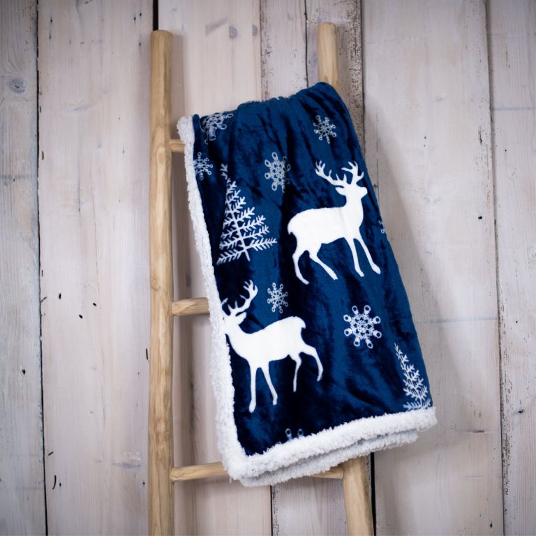 Kocyk 150 x 200 cm BARANEK - niebieski jeleń