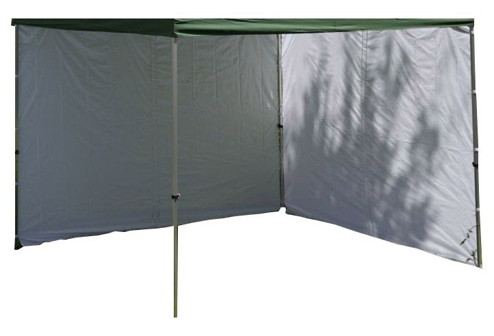 Komplet dwóch ścian do pawilonu PROFI o podstawie 3 x 3 m ewentualnie 3 x 6, 3 x 9 m - biały. Ścianki łatwe w montażu za pomocą pasków na rzepy lub haczyków. Materiał wodoszczelny oddychający - poliester PA powlekany, chroniący przed wiatrem.