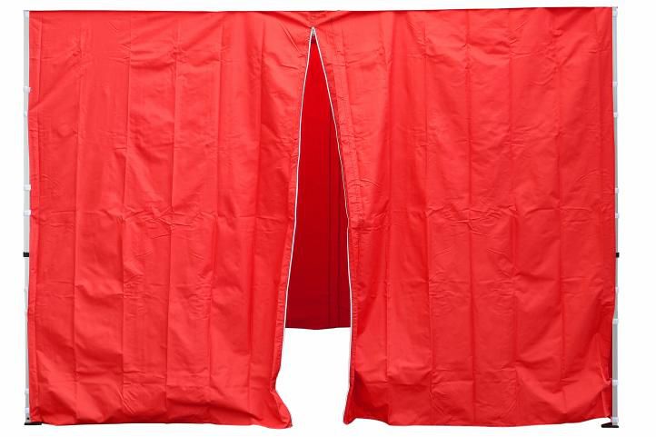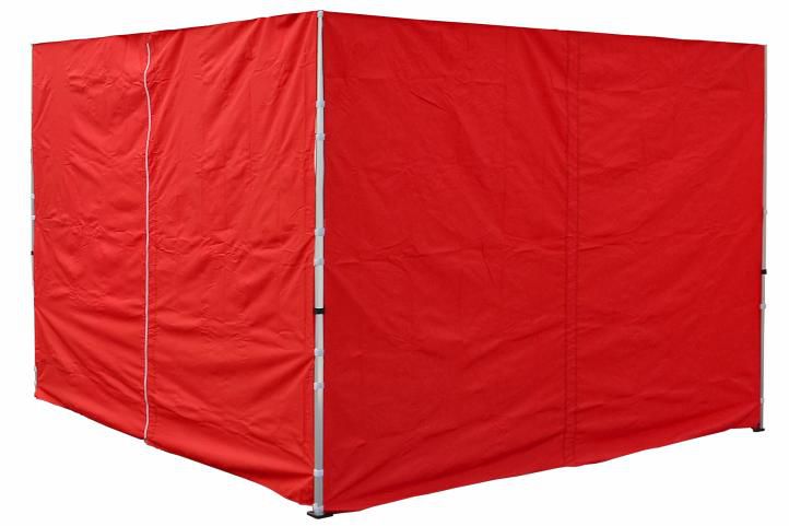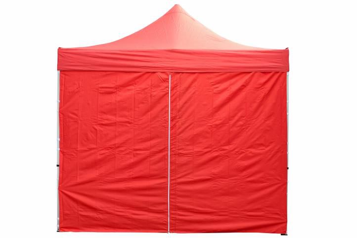 Komplet dwóch ścian do pawilonu PROFI o podstawie 3 x 3 m - czerwona. Ścianki łatwe w montażu za pomocą pasków na rzepy lub haczyków. Materiał wodoszczelny oddychający - poliester PA powlekany, chroniący przed wiatrem. 1 ściana posiada zamek błyskawiczny, która może posłużyć jako wejście. Boczne ściany pasują do wszystkich pawilonu PROFI.