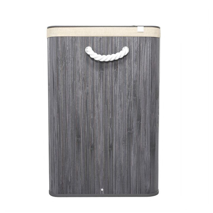 Utrzymuj porządek i harmonię w domu dzięki pojemnemu koszowi na pranie z naturalnego bambusa. Trzy oddzielne komory pozwalają wygodnie sortować ubrania, a nowoczesny szary design wprowadza do wnętrza przytulność i styl. To rozwiązanie, które doceni każda rodzina – w łazience, sypialni czy pokoju dziecięcym.