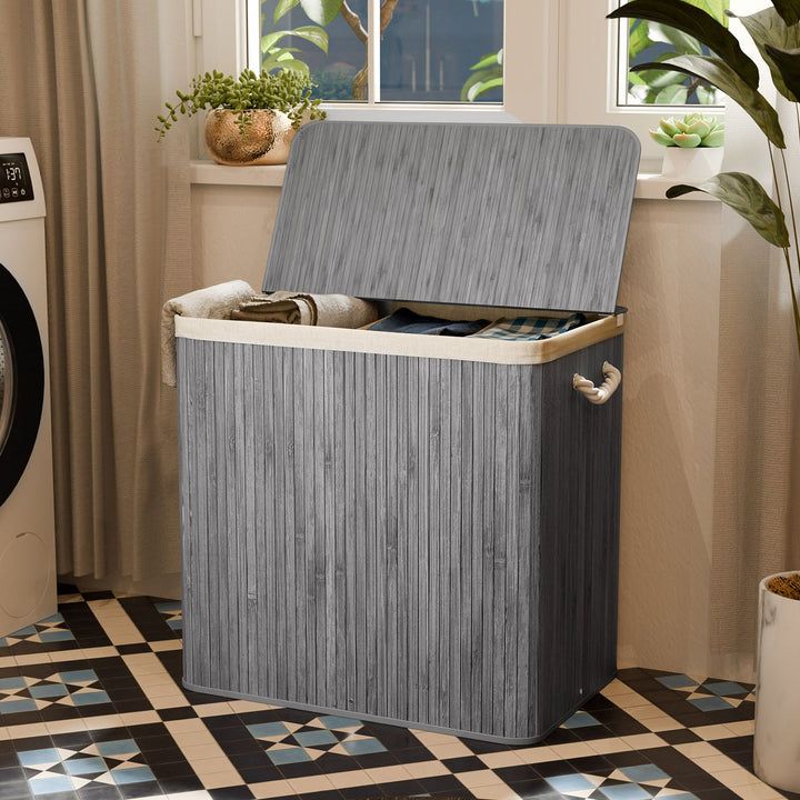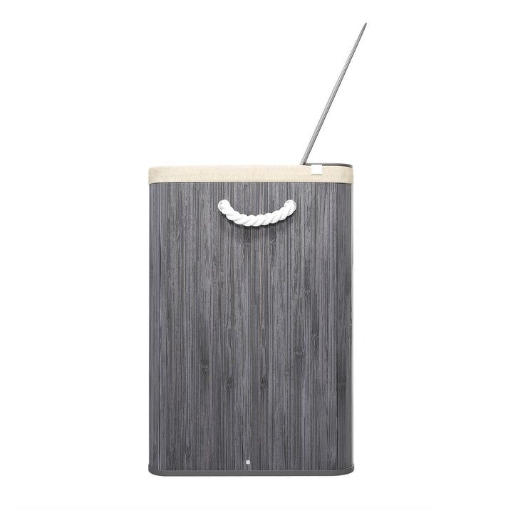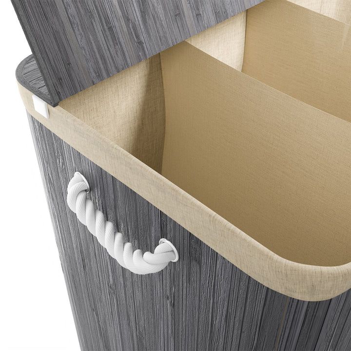Kosz na pranie bambusowy 150l, 3 komory, szary, z pokrywą