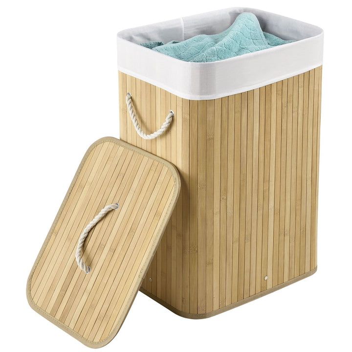 Kosz na pranie bambusowy 72 l z pokrywą i workiem, naturalny