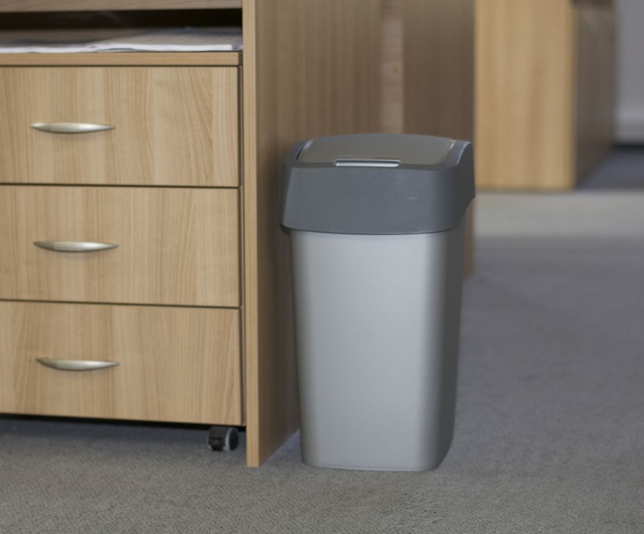 Praktyczny plastikowy kosz na śmieci z serii FLIPBIN. Kosz FLIPBIN otwiera się ręcznie za pomocą odchylnej pokrywy. Wybór różnych kolorów. Pojemność kosza 25 l. Jakość z Curver.