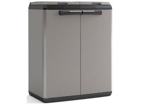 Kosz do segregacji odpadów z górnym otworem do odpadów. Wygodna obsługa worka na śmieci dzięki otwarciu z przodu. Na dwa worki na śmieci o pojemności 110 l. Łatwy w utrzymaniu i trwały.