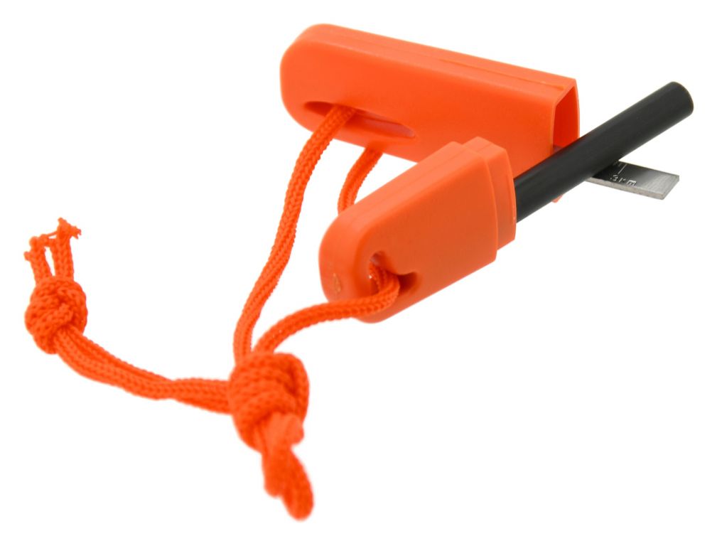 Szczególnie cenny dla podróżujących i kempingowych, wyposażony w sznur dla łatwego przenoszenia. Pierwsza część jest wyposażona w sztyft magnezowy, który za pomocą stalowej przepustnicy w drugiej części jest w stanie wytworzyć bardzo gorącą iskrę, która zapala ogień. Temperatura iskry jest wyższa niż 2000 ° C