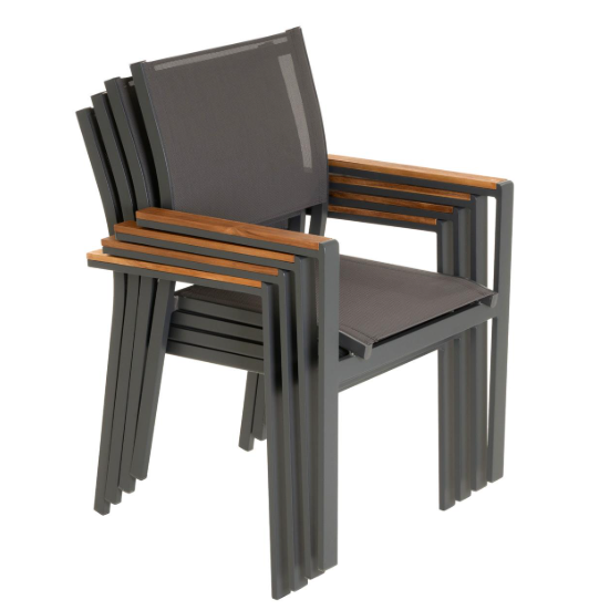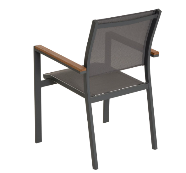 Stwórz miejsce do relaksu na świeżym powietrzu dzięki tym praktycznym krzesłom. Wygodne i stylowe, z brązowymi podłokietnikami, doskonale sprawdzą się podczas rodzinnych spotkań i odpoczynku w ogrodzie.
