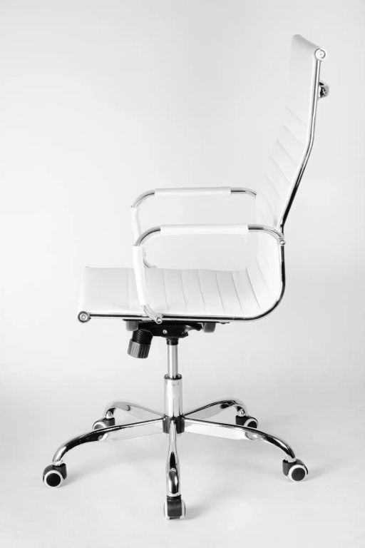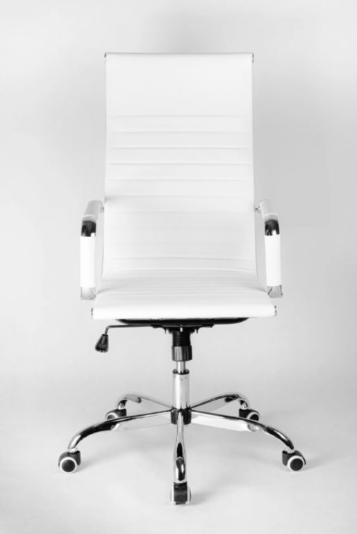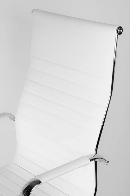 Podstawą krzesła jest solidny metalowy chromowany krzyż z pięcioma plastikowymi kółkami. Wraz z mocnym tłokiem krzesło to zapewnia nośność 120 kg. Tłok do regulacji wysokości siedziska w zakresie 47 - 55 cm można wygodnie obsługiwać spod siedziska, a także sterować pochyleniem oparcia krzesła. Fotel posiada mechanizm synchroniczny, który oferuje funkcję bujania. W takim przypadku docisk sprężyny można regulować w sposób ciągły. Możesz wybrać zakres od lekkiego kołysania do całkowicie swobodnego oparcia, dzięki któremu możesz rozciągnąć mięśnie pleców. Przy dłuższym siedzeniu komfort zapewnia miękka wyściółka, którą wyposażono zarówno w anatomicznie wyprofilowane siedzisko jak i oparcie. Mocno zamocowane podłokietniki mają stylowy, biało-chromowany wygląd. Oparcie jest jednym z wyższych i zapewnia równomierne podparcie całej powierzchni pleców. Chromowana metalowa podstawa krzesła biurowego jest stylowo uzupełniona pikowaną białą ekoskórą - nowoczesnym, trwałym i łatwym w utrzymaniu materiałem, który wygląda i przypomina klasyczną skórę naturalną.