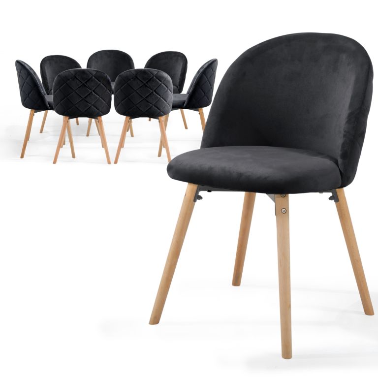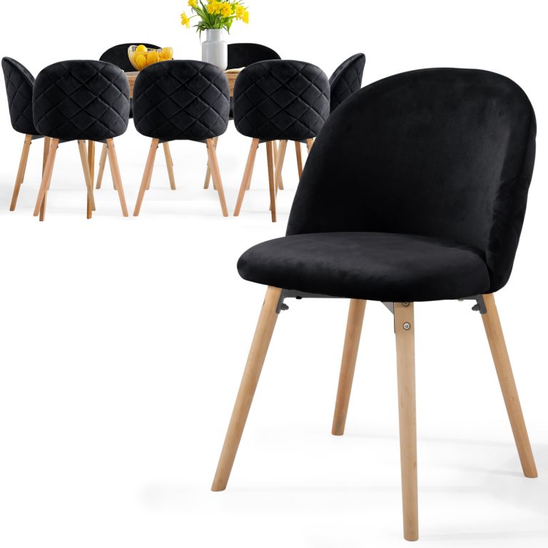 Krzesło do jadalni skandynawskie, czarne, welur, bukowe nogi