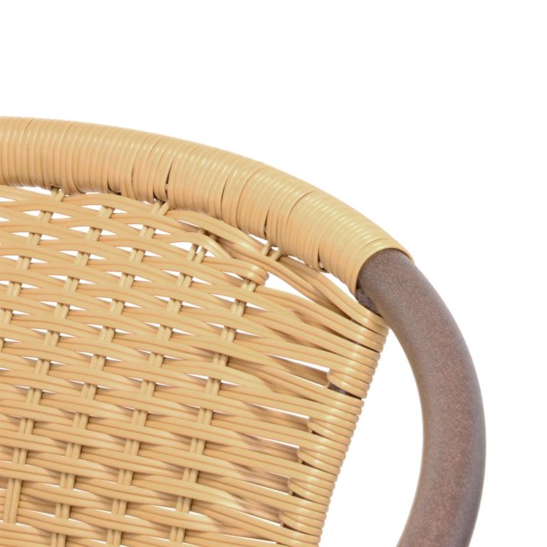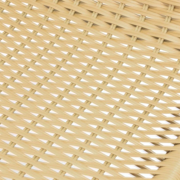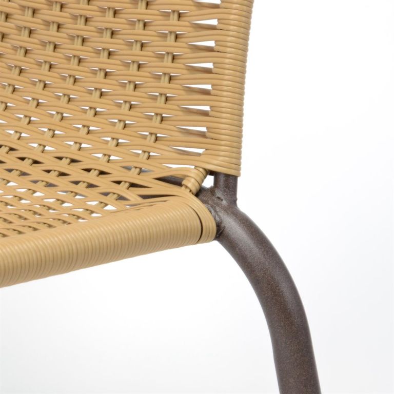 Materiały zastosowane w tym krześle są łatwe w utrzymaniu, odporne na warunki atmosferyczne i nie wymagają specjalnych środków pielęgnacyjnych. Lekkie, ale solidne krzesło do ustawiania w stos z wygodnymi siedzeniami z rattanu jest bardzo wygodne. Stalowa konstrukcja jest malowana proszkowo, a stopy są wyposażone w gumowe kołki. Specjalne wzmocnienie powłoki powierzchni nośnej.