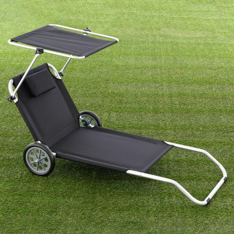 Krzesło plażowe z dachem i funkcją wózka, 150 x 60 x 90 cm