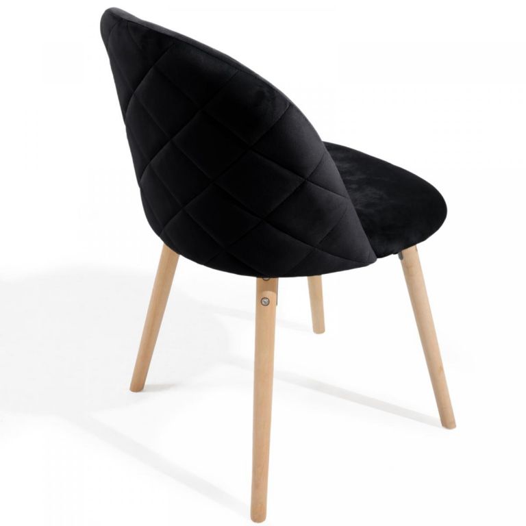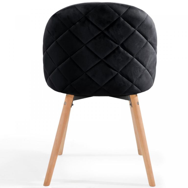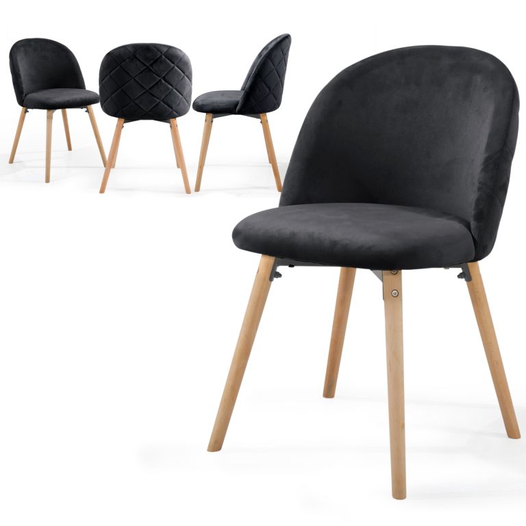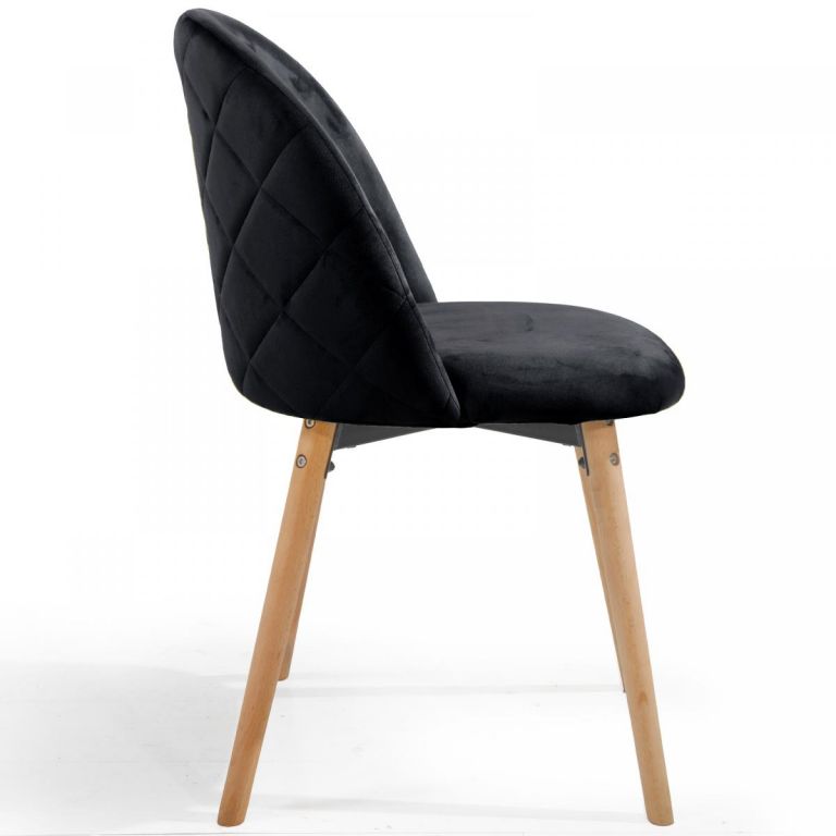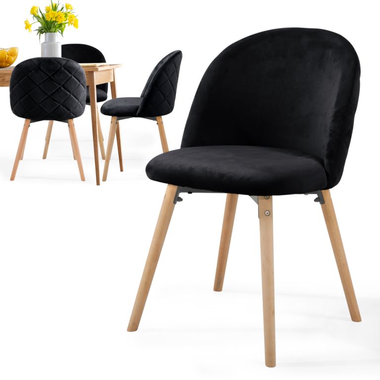 Nowoczesne krzesło skandynawskie z czarnym welurem i bukowymi nogami, idealne do jadalni i salonu.