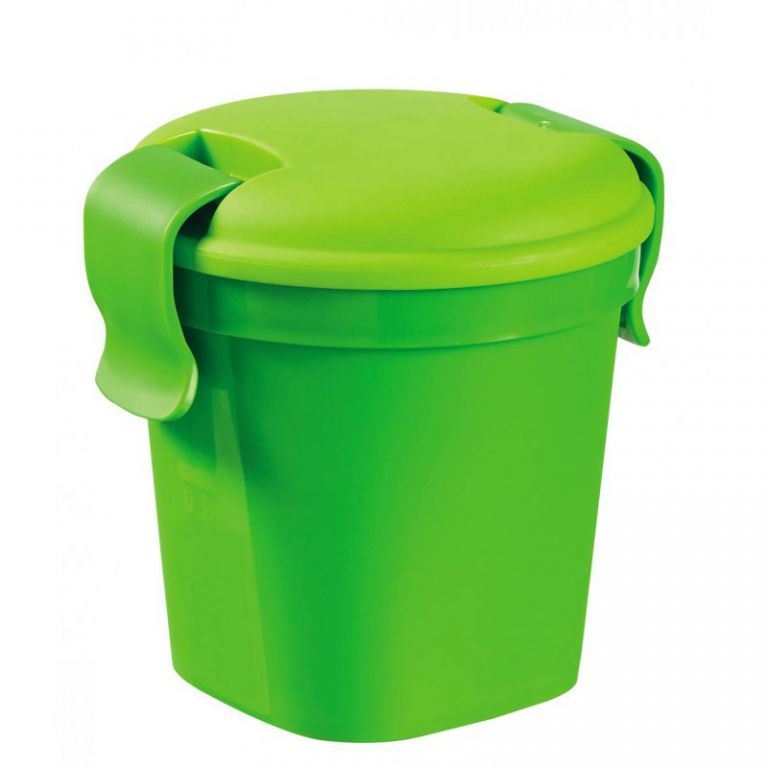 Kubek plastikowy z pokrywką, przeznaczony do przenoszenia potraw lub napojów - np. Jogurt, makaron, koktajle mleczne. Jego pokrywa jest specjalnie gumowana, co zapewnia absolutną szczelność. Kubki LUNCH & GO można myć w zmywarce i używać w kuchence mikrofalowej. Do wyboru są trzy warianty kolorystyczne: zielony, fioletowy i niebieski.