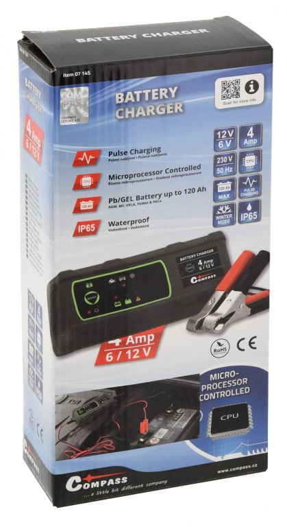 Ładowarka automatycznie wykrywa, czy podłączony jest akumulator 6V lub 12V. Podłączając akumulator 12V można wybrać standardowy lub zimowy tryb ładowania. Po naładowaniu akumulatora ładowanie zostaje przerwane, a ładowarka przechodzi w tryb konserwacji, w którym mikroprocesor kontroluje ładowanie impulsowe, aby akumulator był naładowany. Stabilny prąd ładowania 4 A, wysoka sprawność (85%). Kompaktowy rozmiar pozwala na idealne użytkowanie w domu, w podróży oraz w garażu. Ładuje wszystkie typy akumulatorów ołowiowych (Pb) 6 / 12V - bezobsługowe GEL (żel), AGM, MF, VRLA, konserwacyjne PbWet i PbCa. Ładowanie impulsowe wydłuża żywotność baterii i utrzymuje ją w lepszym stanie.