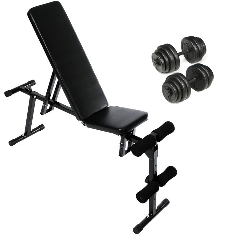 Ławka wielofunkcyjna z hantlami 2 x 15 kg