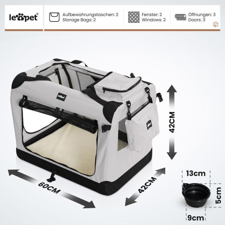 Leopet Box transportowy dla psów, M szary
