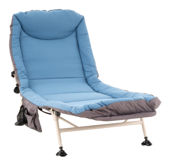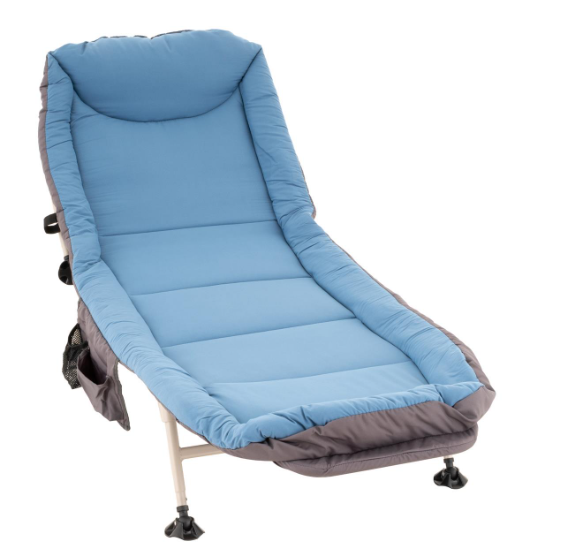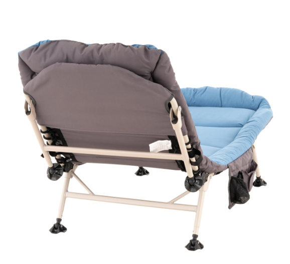 Ten nowoczesny leżak wędkarski ma lekką stalową konstrukcję zaprojektowaną z myślą o dobrej trwałości i stabilności oraz łatwej obsłudze.