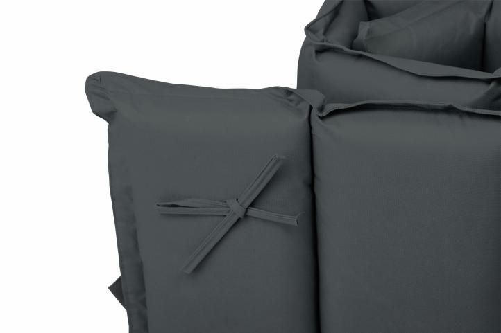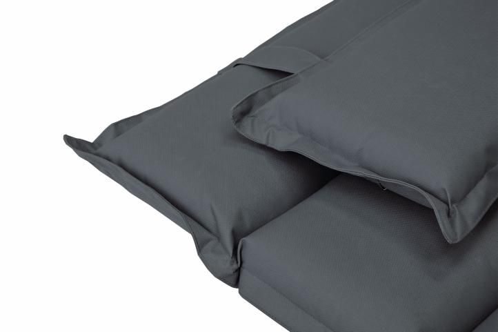 Poduszka jest przymocowana za pomocą 2 pasków do maty i w razie potrzeby można ją złożyć do tyłu. Dwa paski mocujące z tyłu maty mocują matę do leżaka.