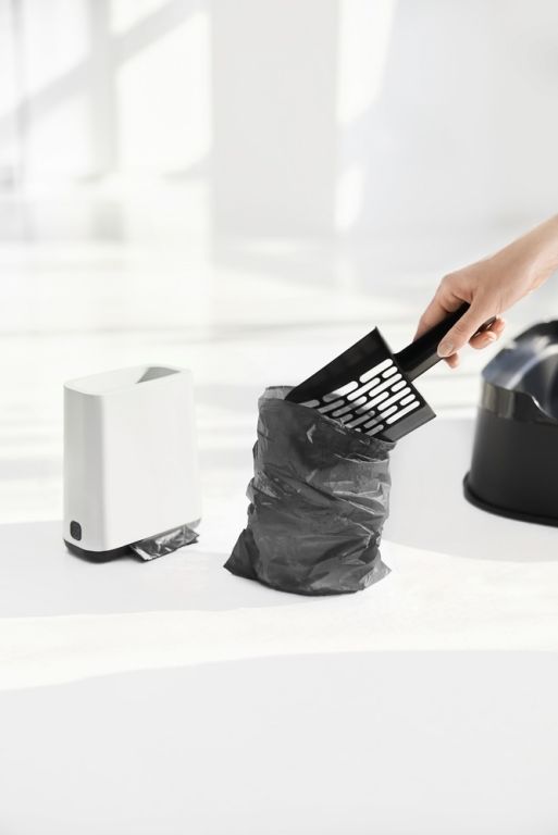 Designerska łopatka z uchwytem z kolekcji BIALA. Łopatka służy do usuwania kocich odchodów z kuwety. Wzór i kolory tej szufelki pasują do kuwety dla kota marki Biala. W zestawie znajduje się rolka worków, które można umieścić w dolnej części uchwytu (dno można zatrzasnąć) i po prostu wyciągnąć.