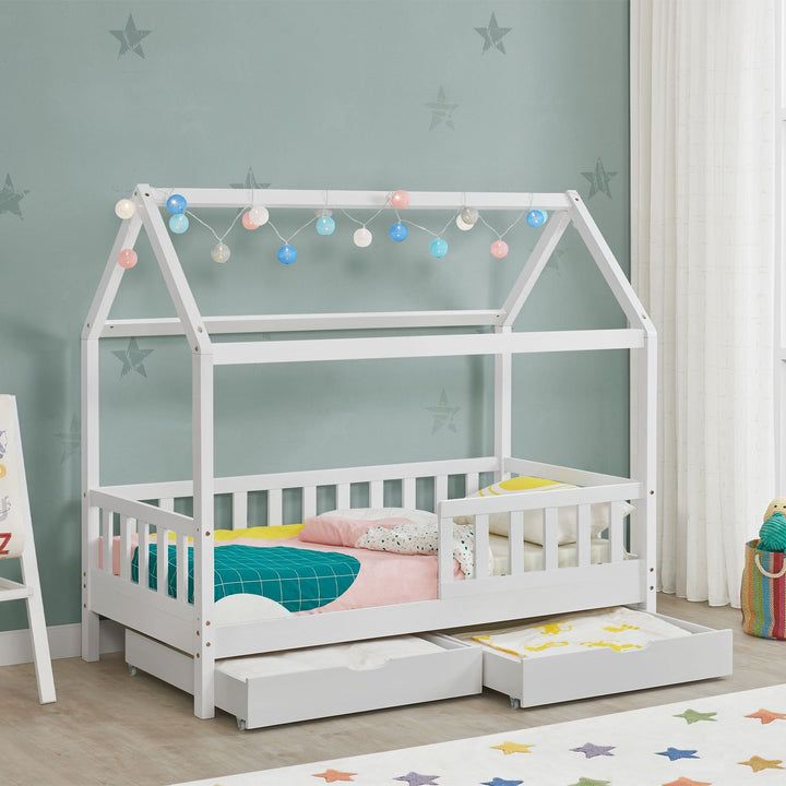 Łóżko domek Marli 80x160 cm z szufladami – idealne miejsce do snu i zabawy dla dzieci.