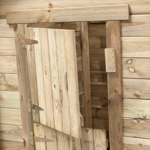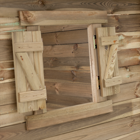 Ukazać szczegółowy opisDrewniany domek dla dzieci z drewnianym dachem, który jest chroniony taśmą bitumiczną. Świetna zabawa dla dzieci.
