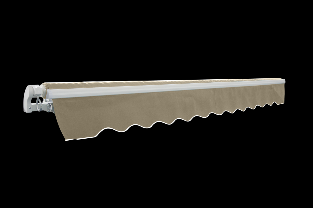Markiza zawiera aluminiową rolkę, aluminiową belkę przednią, stalową belkę tylną