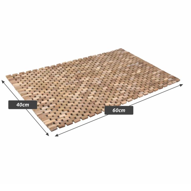 Mata antypoślizgowa, drewno tekowe, naturalna, 60 x 40 cm