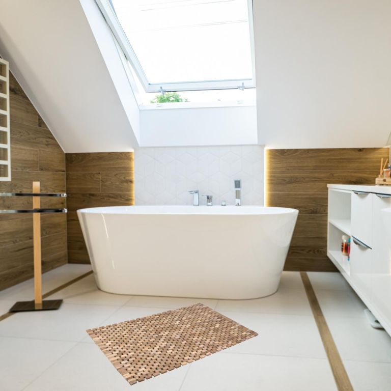 Naturalny styl do każdego pomieszczenia z matą antypoślizgową z drewna tekowego z gumowymi podkładkami zapewnia bezpieczeństwo i wyjątkowość dzięki rę