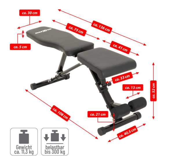 MAXXIVA Ławka do ćwiczeń, regulowana, 108 cm x 40,5 cm, czar